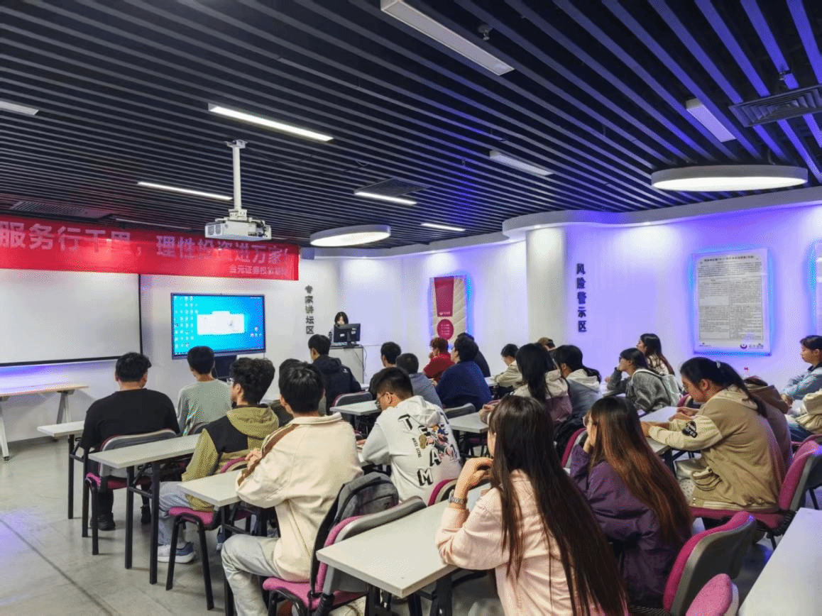 金元期货相关负责人首先向师生介绍了公司概况、核心业务及海南自贸港政策下的战略布局。随后,学生参观了合规部、交易风控部、结算部等部门,各部门负责人结合实际案例,为学生讲解期货市场交易流程、风险控制体系及客户服务模式。