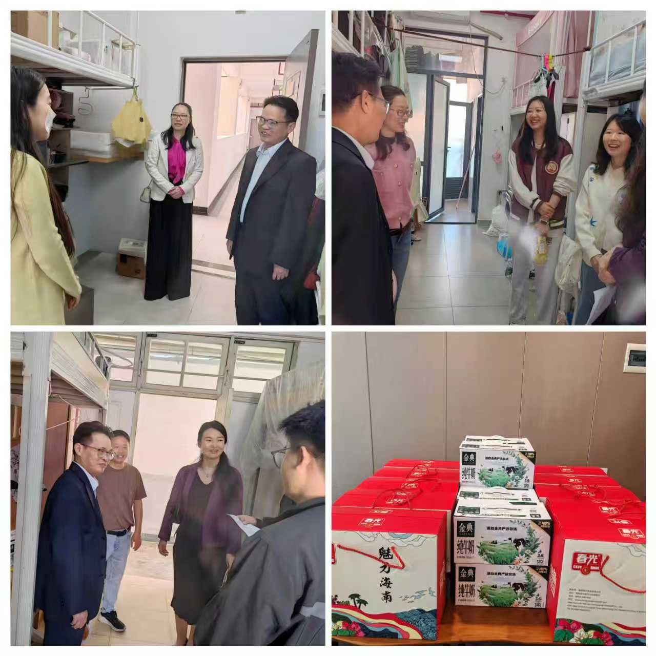 2月14日上午,新春佳节来临之际,海南大学国际商学院党委书记陈琛,党委副书记、纪委书记王静一行先后前往乘风书院、凤翔书院、南海书院和青云书院,看望并慰问寒假期间留校的国际商学院学生,为他们送上节日的问候和新春的祝福。