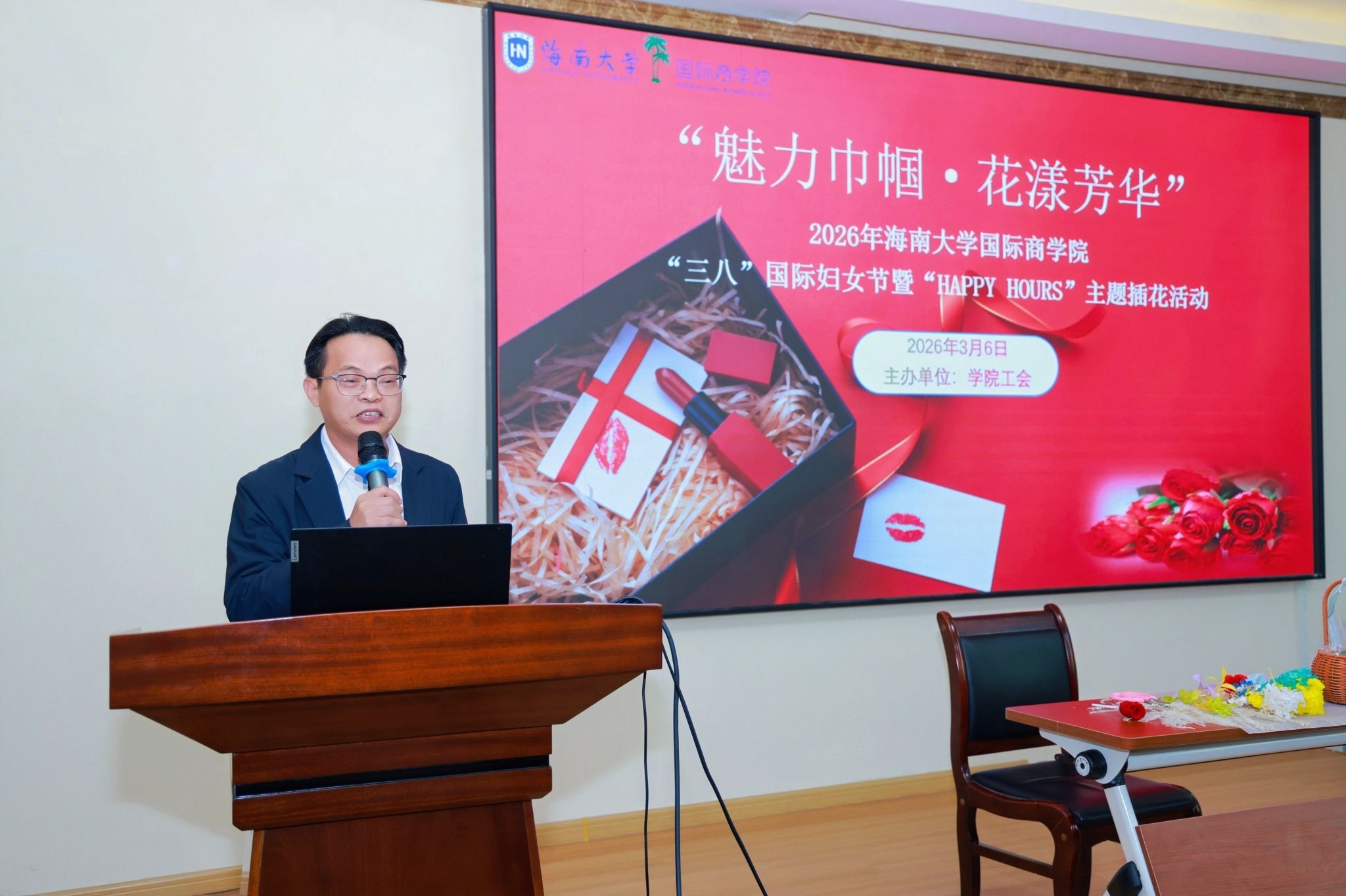 春回大地,万象更新。为庆祝第116个“三八”国际妇女节,丰富女教职工的精神文化生活,3月6日下午,海南大学国际商学院工会在社科楼B112学术报告厅精心组织了“魅力巾帼·花漾芳华”主题插花活动。学院党委书记陈琛、副书记王静、工会副主席秦翰翔与女教职工代表共赴这场春日的芳香之约。活动由秦翰翔主持。