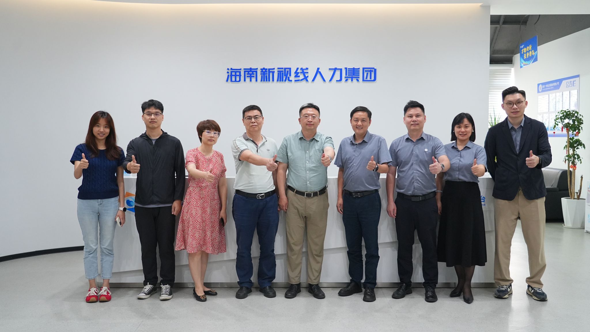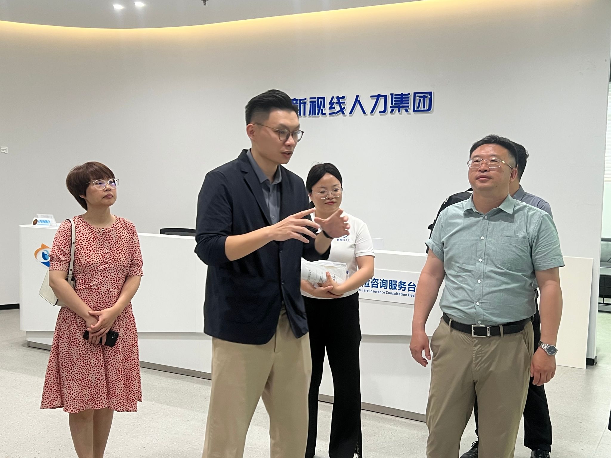 在举行调研座谈前,付景涛副院长一行对新视线人力集团办公区域及业务展示区进行参观学习。