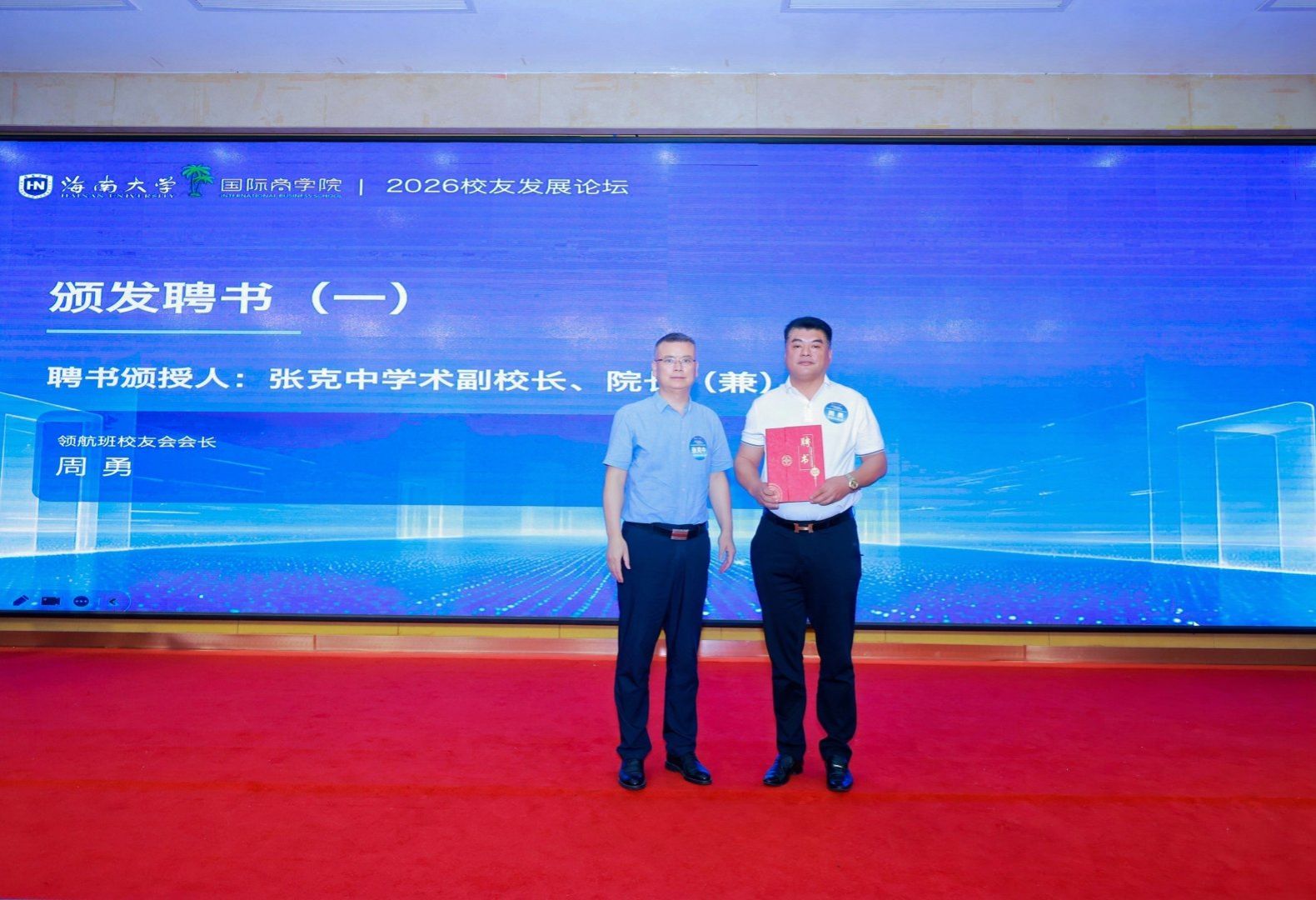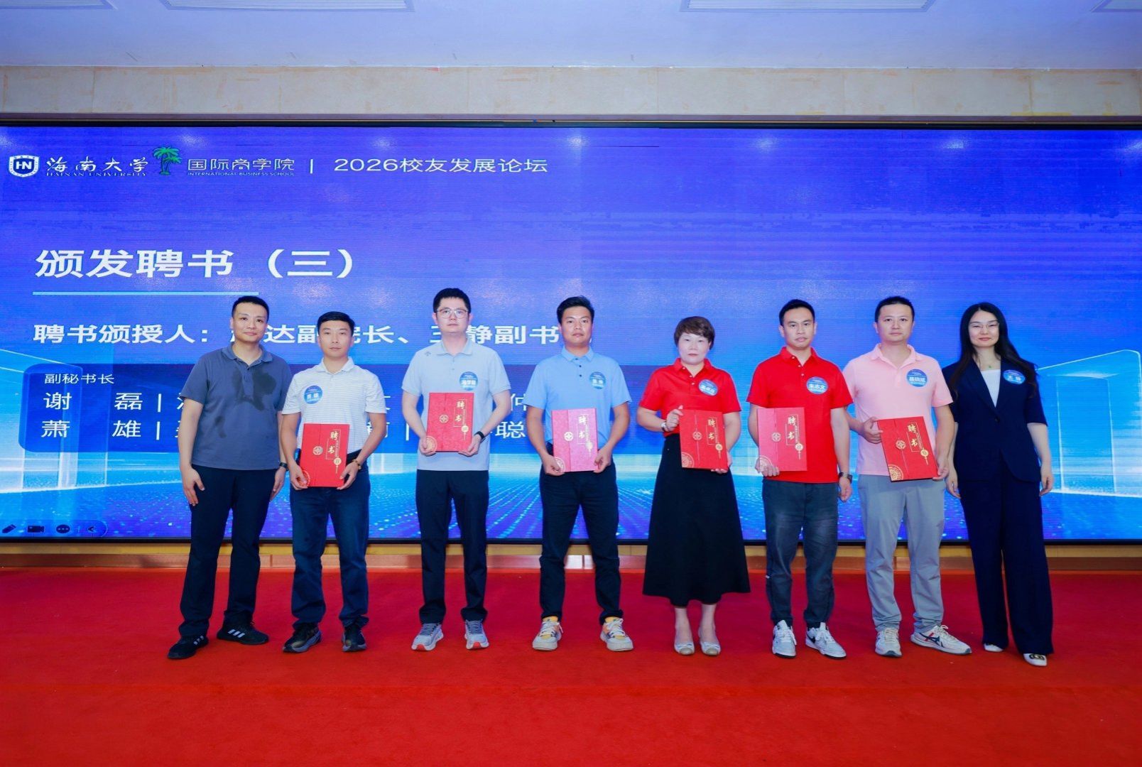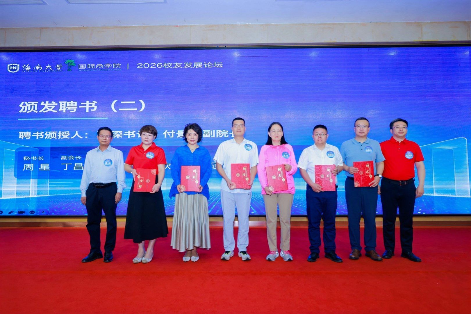 2026年4月11日,海南大学国际商学院在国际交流中心成功举办以“畅叙校友情谊·共话发展蓝图”为主题的2026年校友发展论坛。学校学术副校长、国际商学院院长(兼)张克中、学院党委书记陈琛、副院长许能锐、副院长付景涛、副院长赵达、副院长童泽林、党委副书记、纪委书记(兼)王静,学校继续教育学院副院长张德生,国际商学院校友会执行会长、广州广锦置业有限公司董事长丁铁以及来自省内外的校友、在校教师代表等齐聚一堂,共忆青春岁月,共谋发展良策,为深化校友情谊、推动学院与校友双向赋能注入新活力。