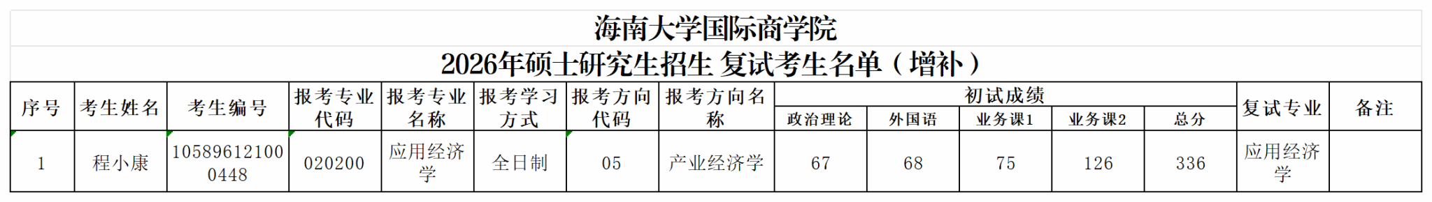 海南大学国际商学院2026年硕士研究生招生复试考生名单(增补)