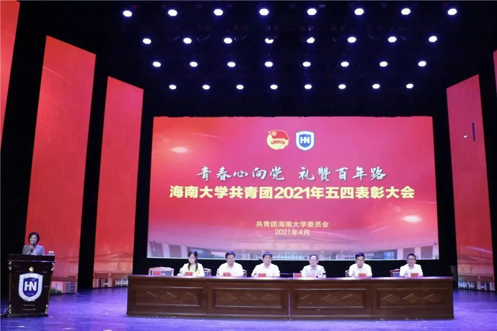 4月30日下午,海南大学共青团2021年五四表彰大会暨党史学习教育专题报告辅导会在思源学堂大礼堂举行。共青团海南省委书记陈屿,共青团海南省委常委、学校与少年工作部部长李瑗;中国科学院院士、海南大学校长骆清铭,党委常委、副校长梁谋,党委常委、副校长曹宪忠,党委常委、统战部部长陈明宝出席会议。