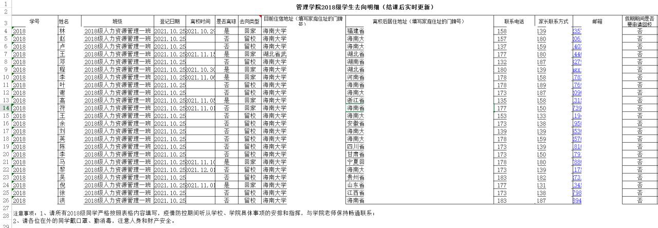 为响应学校号召,切实做好我院2022届毕业生的校外实习和留校学生的管理工作,加强离校安全教育,保证毕业生离校后的人身和财产安全,做好疫情防控工作,同时也为培养学生求职的积极性和主动性,推动我院就业创业工作的进一步开展。2021年11月,海南大学管理学院陆续召开2022届毕业生离校安全会,会议由各专业辅导员老师组织本专业学生召开,2022届毕业生全体参加。
