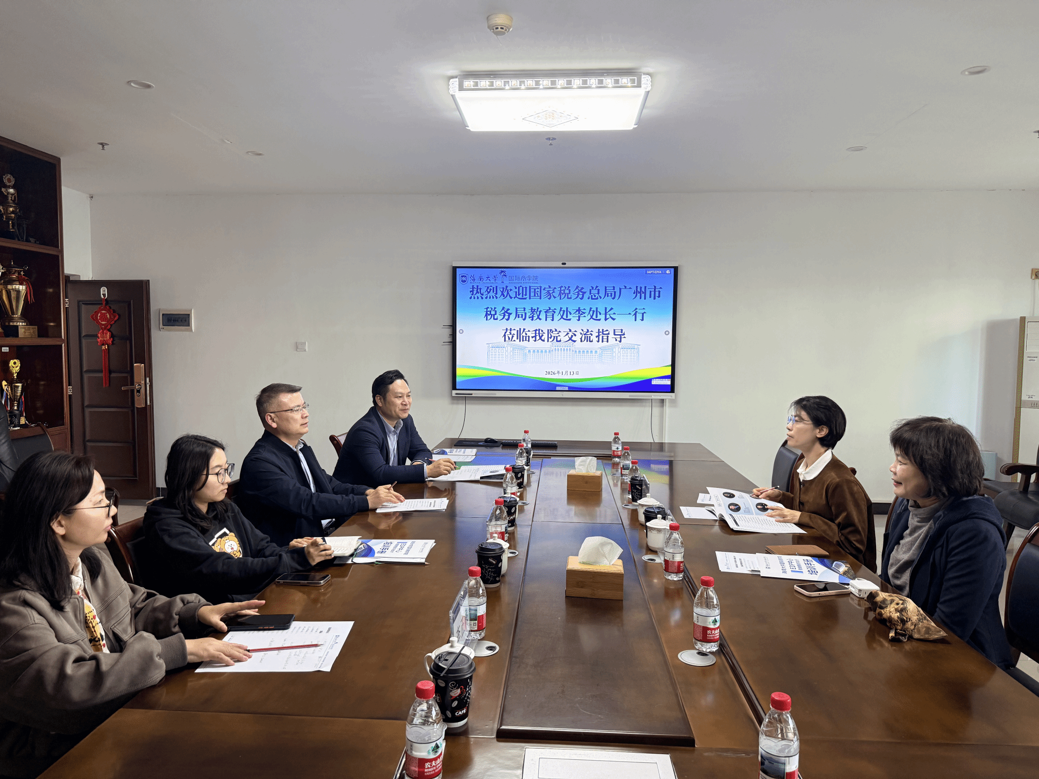 1 月 13 日下午,国家税务总局广州市税务局与海南大学国际商学院在海南大学社科楼 B314 会议室举行座谈会,双方围绕深化政校合作、共商税务系统培训发展事宜展开深入交流。
