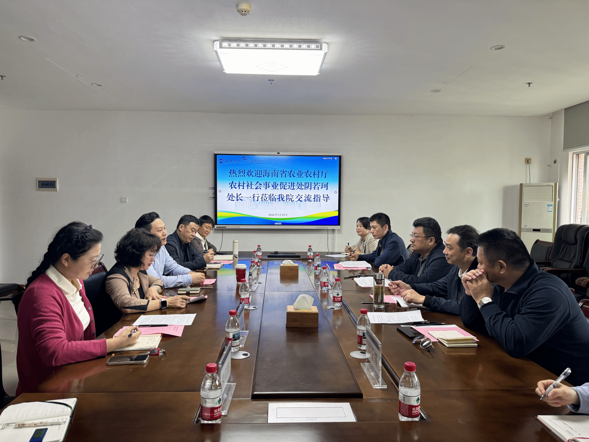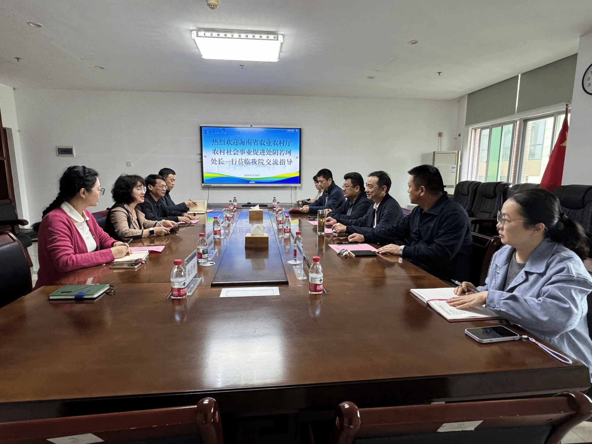2026年1月15日上午,海南省农业农村厅农村社会事业促进处与海南大学国际商学院在社科B314联合召开海南省农业外贸人才培养专题调研会,共同探讨农业外贸人才培养的合作路径。海南省农业农村厅农村社会事业促进处处长阴若珂,海南省农民科技教育培训中心主任刘云、办公室主任郭彬、高级农艺师刘金霞,海南大学国际商学院党委书记陈琛、副院长童泽林、农林经济管理系责任教授韦开蕾、农业硕士项目中心主任邓须军、农林经济管理系主任王佳楠及 EDP 中心相关负责人出席会议。