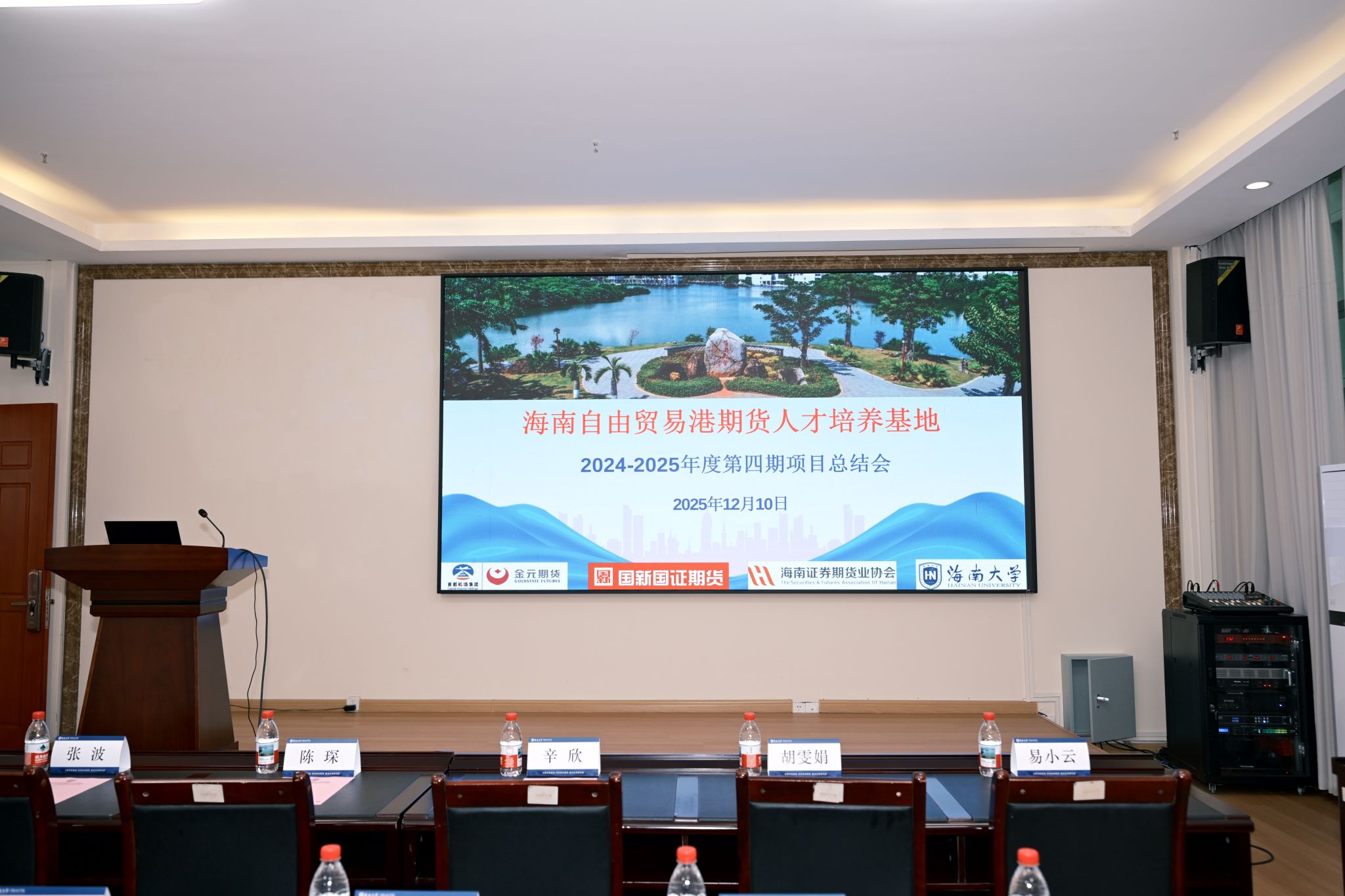 2025年12月10日下午,海南自由贸易港期货人才培养基地2024-2025年度项目结项仪式在海南大学社科楼B112学术报告厅顺利举行。海南证监局、海南证券期货业协会、金元期货股份有限公司、国新国证期货有限责任公司等单位代表,与海南大学国际商学院师生共同出席。海南大学国际商学院党委书记陈琛出席仪式,仪式由国际商学院副院长付景涛主持。