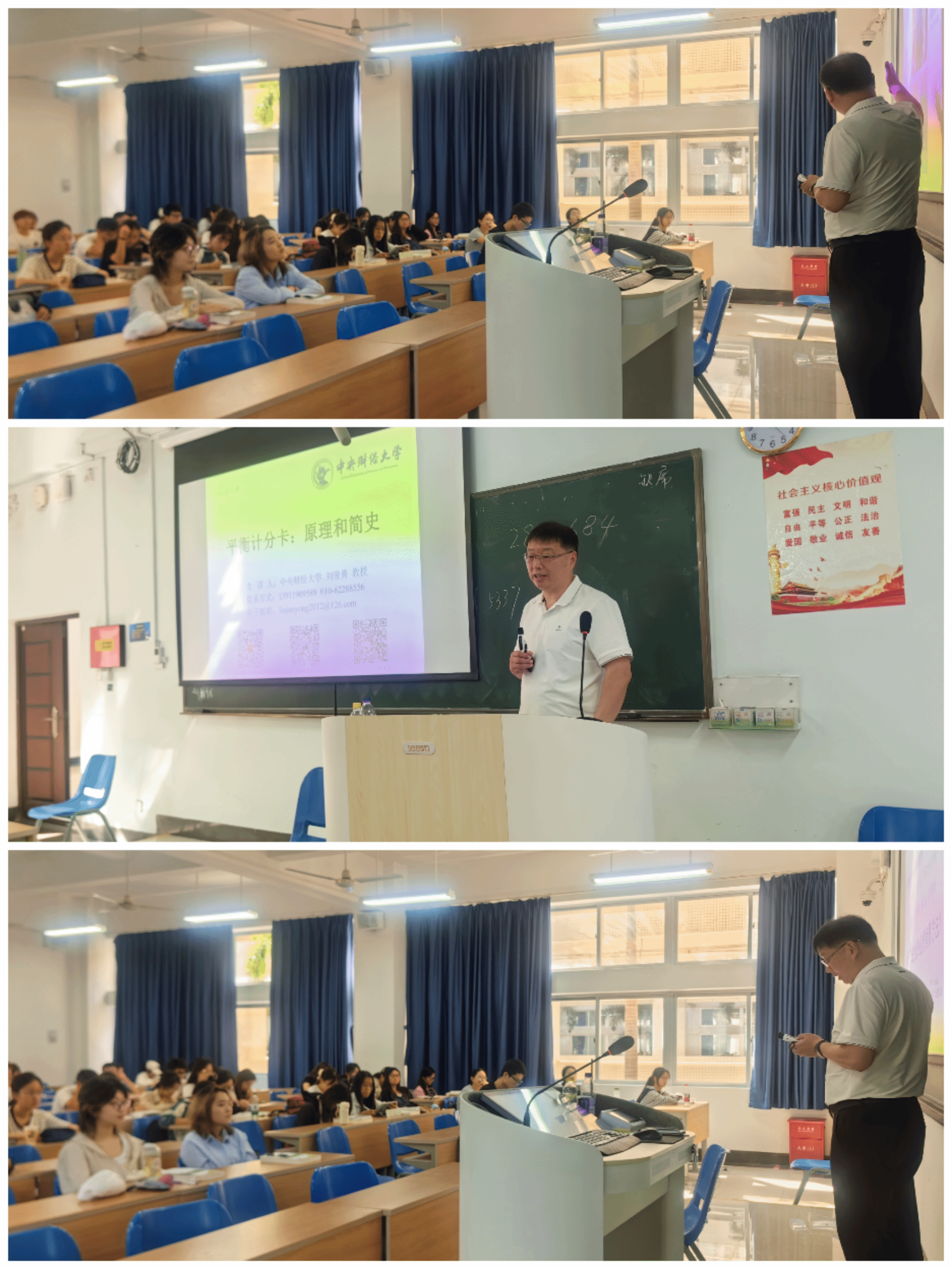 2025年11月12日,中央财经大学会计学院刘俊勇教授应邀来我校开展“冬季小学期”系列活动。上午7:30,刘俊勇教授走进5-206教室,以“大型企事业单位在战略规划中如何应用战略地图与平衡计分卡”为题,给2024级会计学本科税法课程1班的同学生动讲授了管理会计在实践中的应用;9:45分,刘俊勇教授在4-202教室为2024级会计学本科税法课程2班的同学讲授了“平衡计分卡:原理与简史”。刘俊勇教授生动的语言,丰富的案例,灵活的互动方式和多样化的线上讨论与沟通渠道,深深吸引了听课师生们的注意力,开拓了学生们的视野,也让大家充分感受到了智慧课堂的魅力。